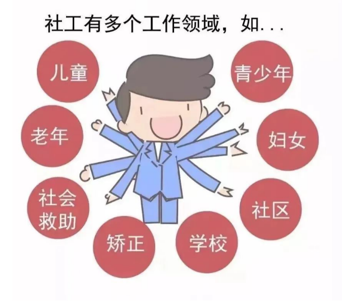 2.老年社会工作:在养老机构、康复中心等场所为老年人提供生活照料、心理支持、康复护理等服务,应对人口老龄化带来的社会问题。