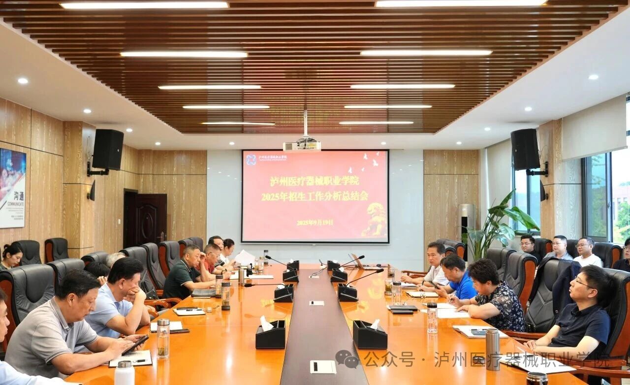 9月19日,泸州医疗器械职业学院在行政楼210会议室召开学院2025年度招生工作分析总结会议。院长鞠梅教授,党委书记唐家州教授,副院长姚毅、邹青、尹德辉、王志斌教授等领导班子成员出席会议,各系部负责人和招生办公室全体成员参加会议,会议由尹德辉主持。会上围绕今年招生工作情况、存在问题及下一步改进措施展开深入研讨。