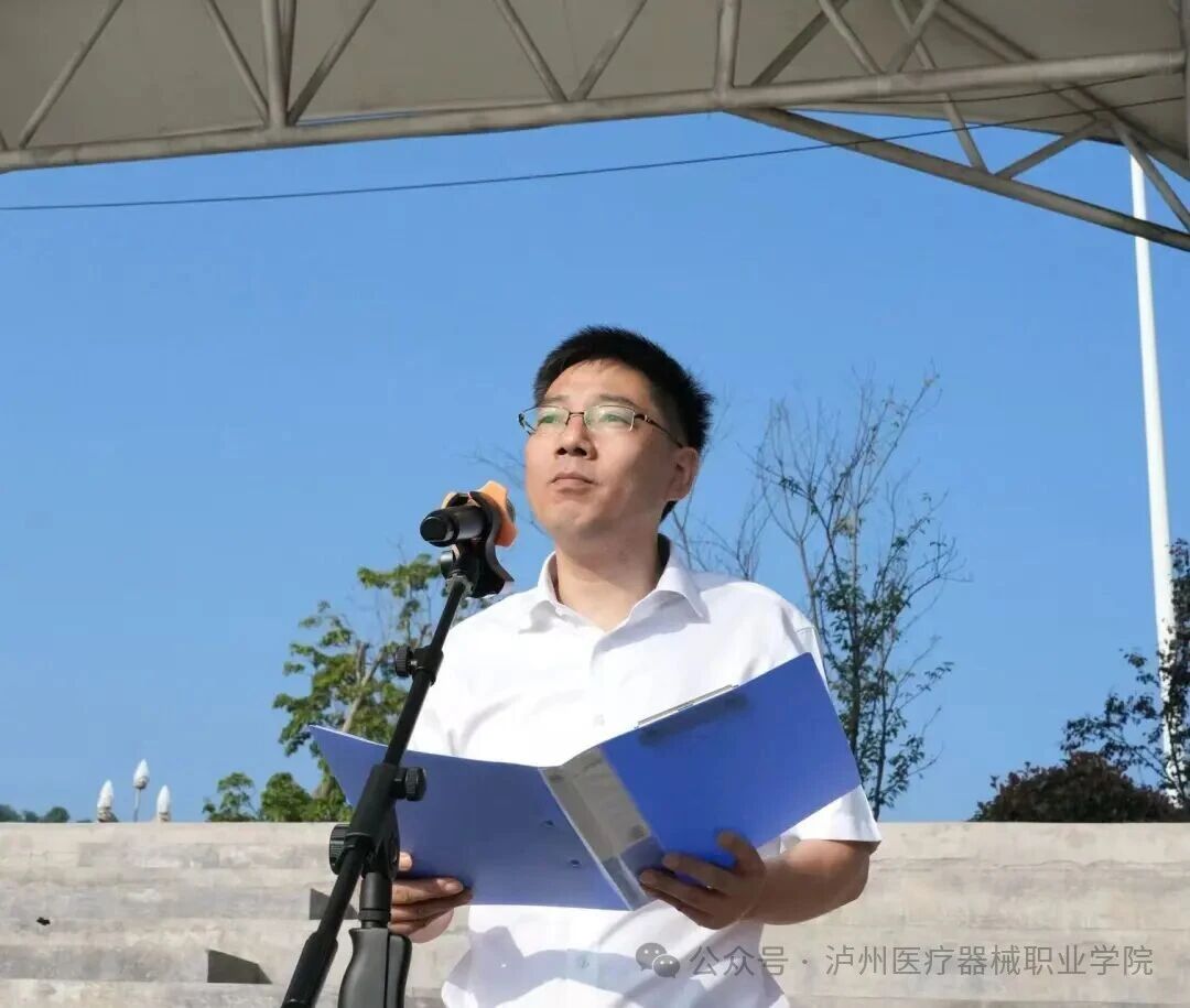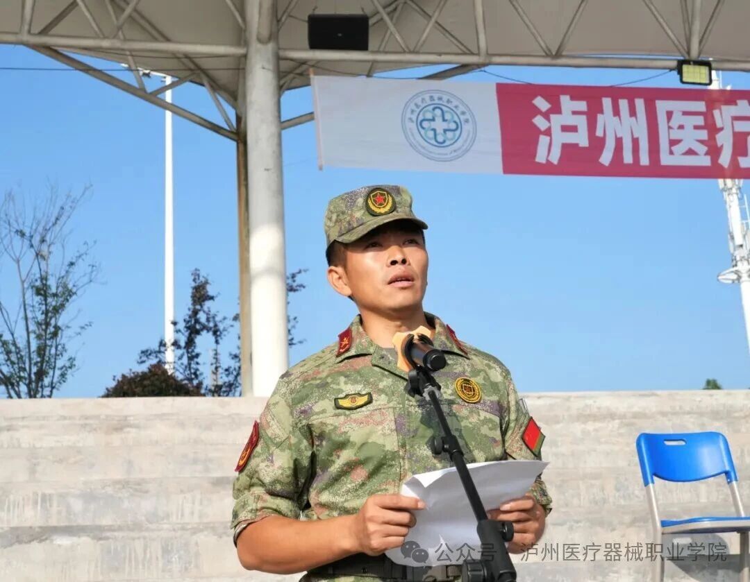 唐家州作军训动员讲话,强调了军训工作的重要意义,对军训组织和学生参与提出了明确要求与殷切期望,并庄严宣布:泸州医疗器械职业学院2025级新生军训正式开训!唐家州要求同学们: