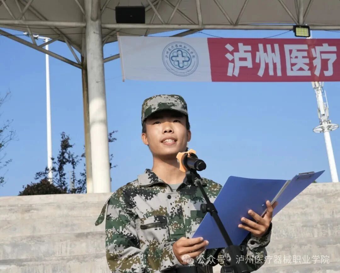动员大会上,2025级军训学生代表、医疗器械经营与服务系社会工作专业的曾鑫同学发言,表达了迎接挑战、锤炼自我的决心。