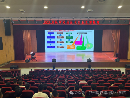 9月9日16:10-17:10,学术报告厅内座无虚席,2025级医学检验技术专业的新生们正聆听着西南医科大学附属医院检验科于卉老师的知识分享。