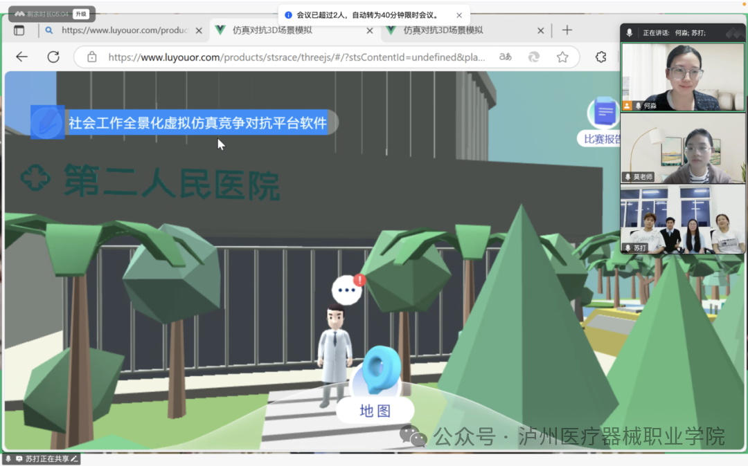 自4月组队完成后,牵头组建由何淼、莫洁雲等系部教师构成的指导团队,启动全周期备赛计划,协调备赛资源,联动学校与泸州市纳溪区政府共建的社会工作学院引入本地真实案例,同时定期召开备赛研讨会,与师生共同梳理训练难点、优化案例方案,确保备赛方向贴合实战需求。团队以 “陆由云” 3D 虚拟仿真平台为核心训练载体,每日开展3小时高强度训练,内容涵盖数字化社会工作理论深化、平台操作流程熟悉、参赛案例方案打磨等,不断优化方案可行性与创新性。