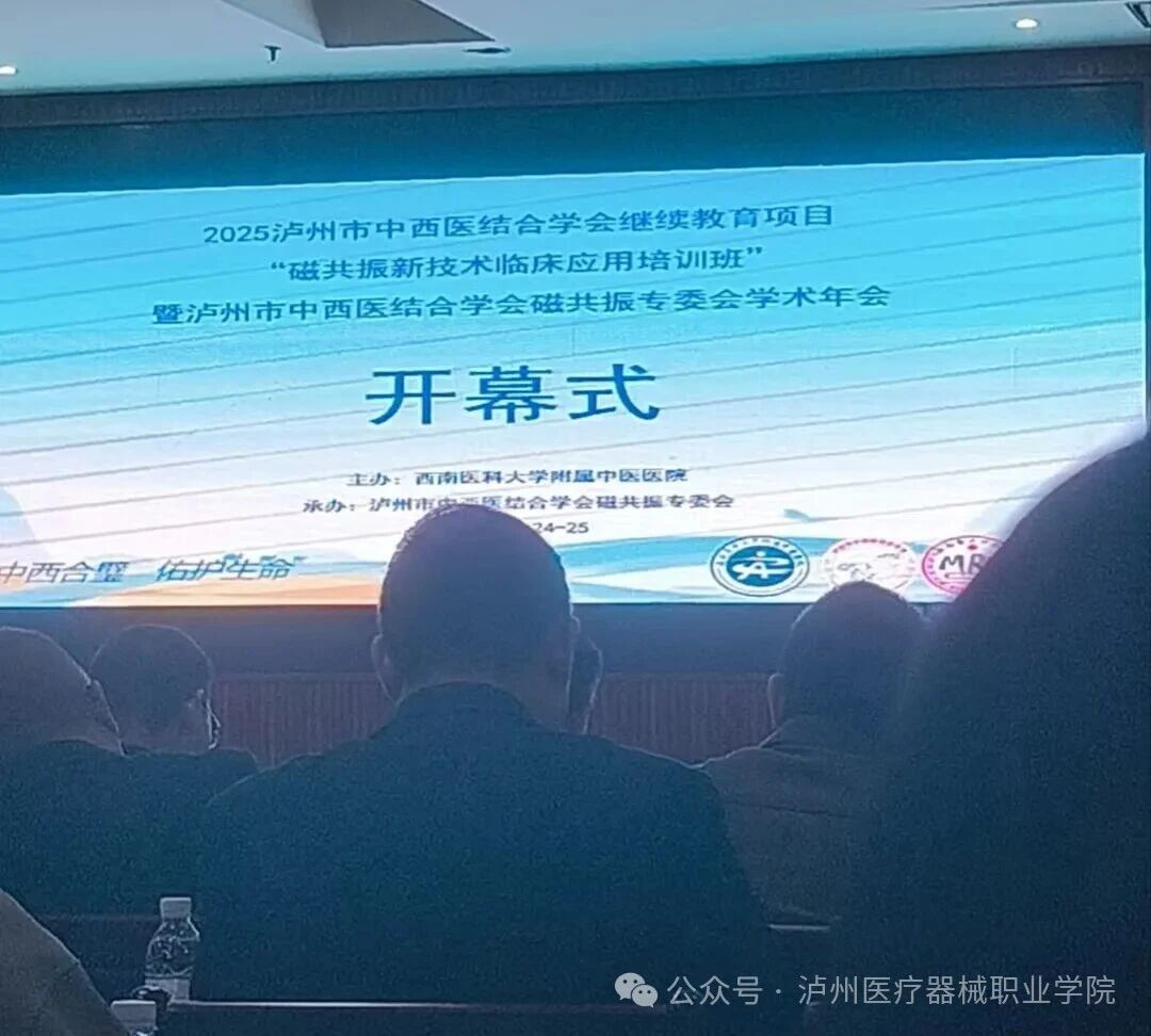 10月25日,由四川省及泸州市中西医结合学会主办的“磁共振新技术临床应用培训班”暨泸州市中西医结合学会磁共振专委会学术年会在西南医科大学附属中医医院城北院区顺利召开。泸州医疗器械职业学院2024级放射治疗技术专业30余名学生受西南医科大学附属中医医院磁共振科室主任刘勇教授邀请参会学习,聚焦磁共振新技术在临床中的应用,收获颇丰。